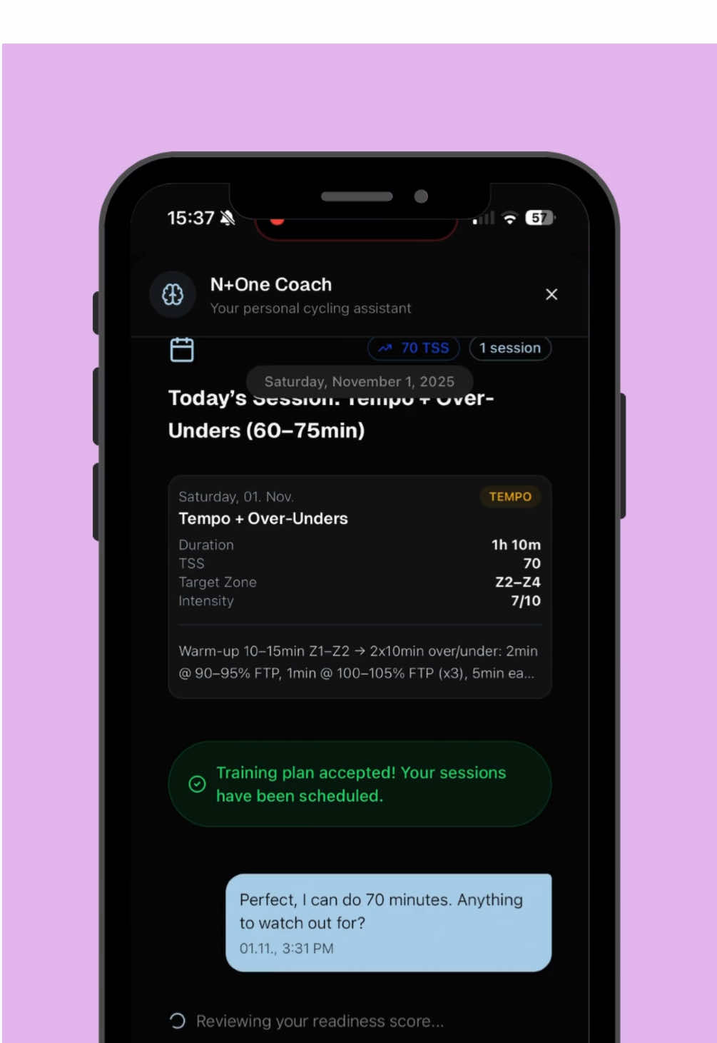 Life happens. Your training plan should adapt. 🔄 That feeling when you realize your schedule changed and your old coach's plan is now useless? We fixed that. With N+One's AI Coach Chat, you can insta